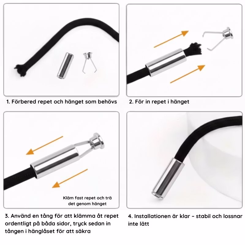 - Enkel montering: Inget krångel, trä snöret genom cylindern, fixera med den medföljande klämman och dra över hylsan för ett perfekt resultat.