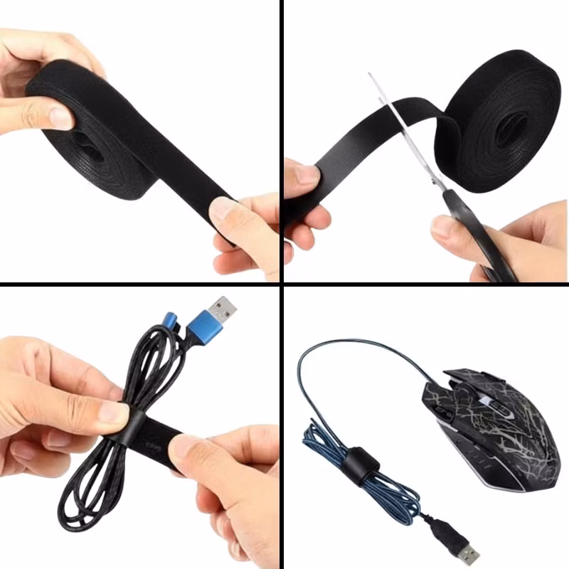 Ordning och reda på sekunder, fäster direkt mot sin egen rygg! Detta är inte ett vanligt kardborreband. Vårt dubbelsidiga kardborreband är specialdesignat för att fästa mot sin egen baksida, vilket gör det till det absolut smidigaste verktyget för buntning. Du behöver inga extra spännen eller lim, linda bara bandet runt det du vill fästa och låt det låsa sig själv.