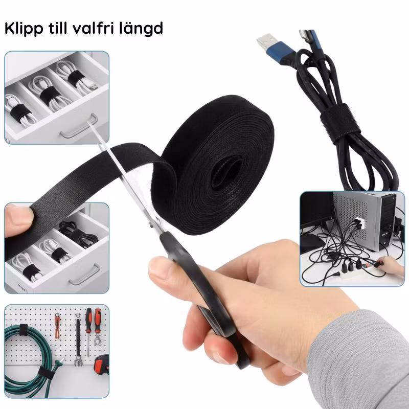 Oavsett om du vill tämja kabelkaoset vid skrivbordet eller hålla ihop skidutrustningen i förrådet, är detta den perfekta, återanvändbara lösningen.