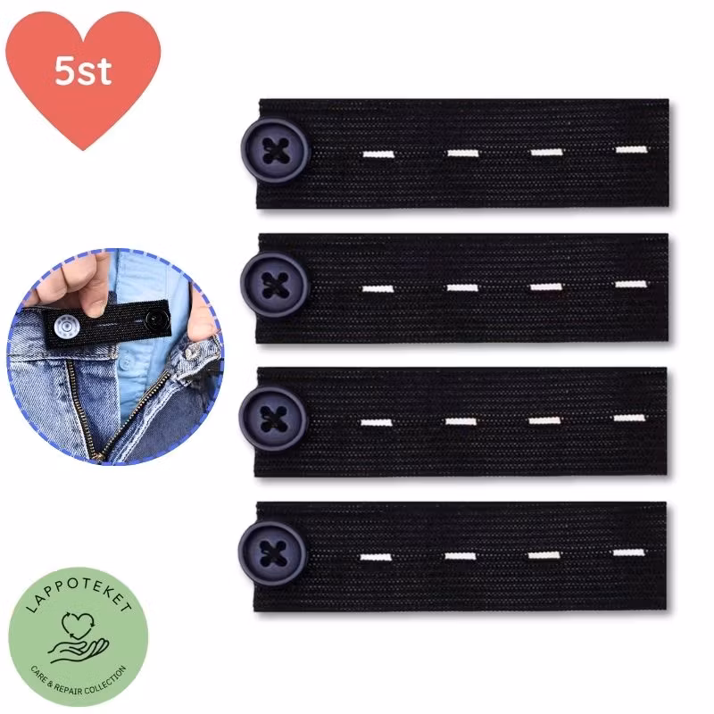 - 5 st Svarta midjeförlängare (Klassisk design som döljs enkelt under bältet).