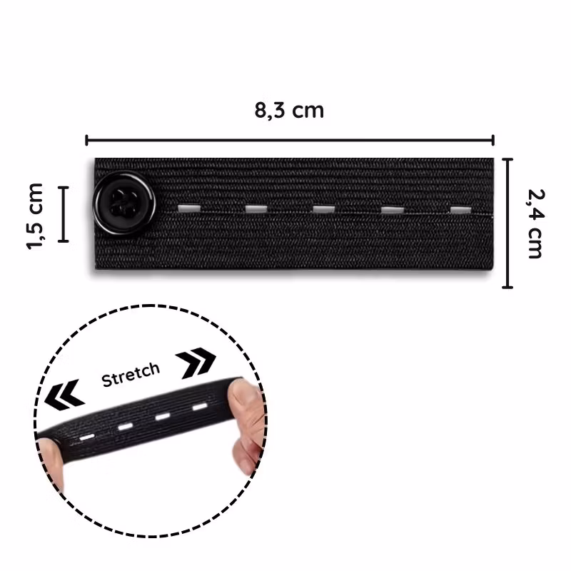 - Flexibel justering: Varje förlängare har 4 olika knapphål, vilket låter dig justera midjeomfånget stegvis efter behov.