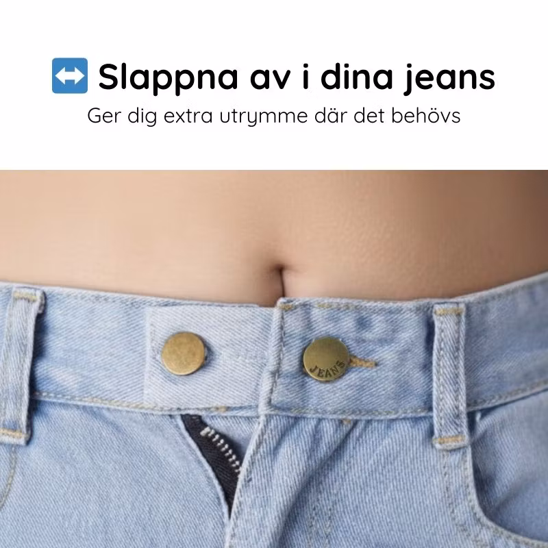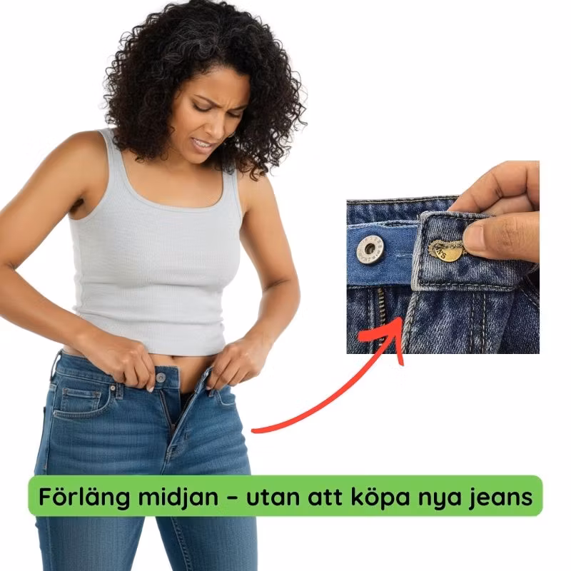 Ge dina favoritjeans nytt liv med ett enkelt knapptryck! Har dina favoritjeans blivit lite för trånga i midjan? Med våra smarta midjeförlängare kan du enkelt öka omkretsen med en eller två storlekar utan att behöva köpa nya byxor. Dessa förlängare är perfekta vid graviditet eller när du bara behöver lite extra rörelsefrihet.