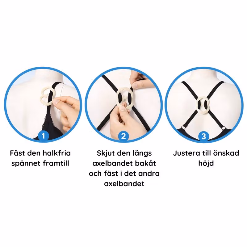 - Halkfri funktion: Håller banden säkert på plats så att du slipper krånglet med axelband som ständigt glider ner över axlarna.