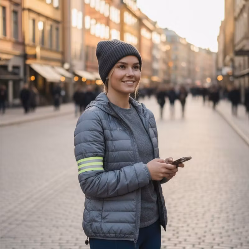 Våra justerbara armband är enkla att sätta på arm, ben eller väska. Det elastiska materialet och kardborrefästet gör att de passar både barn och vuxna och kan användas över olika typer av kläder. Perfekt för fritidsaktiviteter som sport, lek eller promenader.